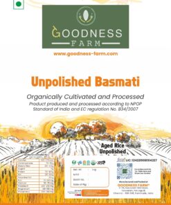 - Organic Basmati Rice Paddy is procured from Rajvanshi Organic Farm, Uttrakhand in the foothills of the Himalayas and processed at Goodness Farm’s milling unit in Cheyyar.
