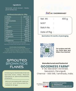- Sprouting: The soaked rice are germinated under proper conditions. (This process involved is what makes Goodness Farm’s flakes unique, a first-of-its-kind that is patented recognized for its imperative nutritional profile)